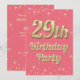 29th Birthday Gold Bling Typography Confetti Pink Invitation