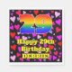 This fun and happy birthday-themed paper napkin design features a large number “29” having a rainbow spectrum gradient inspired pattern. It also features the message “Happy 29th Birthday,”, and a customizable name. The background features a pattern of purple, pink, and red heart shapes. Upbeat, friendly paper napkins like this might be fun to use at a birthday celebration/party being held to celebrate somebody’s twenty ninth birthday. [~Z0000550]