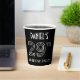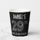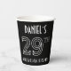 This stylish Roaring Twenties era inspired art deco look birthday-themed paper cup design has a custom name, along with the message “29TH BIRTHDAY PARTY!”. The number “29TH” has a fancy geometric lined appearance. Paper cups like these might be used at a party held in celebration of somebody’s twenty-ninth birthday, or some other 29th event. [~Z0000658]