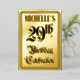 The front of this fancy twenty-ninth birthday party/celebration foil announcement/invitation card design features the message “29th Birthday Celebration” in luxurious script-style text. It also has a customizable name. The back features personalized details about the event, such as the date, time, place, and any other relevant information. Elegant, luxurious, personalized invitations like these might be used to invite guests to a birthday celebration being held to honor somebody’s 29th birthday. [~Z0000596]
