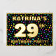 The front of this vibrant twenty-ninth birthday celebration/party foil invitation card design features a custom name, a large number “29th”, the message “BIRTHDAY PARTY!”, and a border. The background of the front has an exciting, colorful stars pattern. The back features personalized details about the event, such as the date, time, venue/location, and any other information that may be useful. Customized invitations like these might be a fun way to invite attendees/guests to a birthday gathering/party being held to celebrate somebody’s 29th birthday. [~Z0000600]