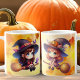 2 Adorable Cute Witch with brooms, Halloween Coffee Mug