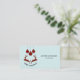 Business cards which say "Merry Christmas" in curved text. Designed with an illustration of 2 Christmas deer jumping. Deer are made of red and black lumberjack plaid, with a little heart in between them. Red and black plaid Christmas decorations hang down from the top. Light blue background.