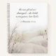 Personalized notebook, journal with inspirational quote scripture depicts a simple nature watercolor including a field with light earth tone shades of tan and grey foliage. It features an encouraging Bible Verse 2 Chronicles 20:15, "Be not afraid nor dismayed... the battle is not yours, but God's." Customize the back with a name or details of your choice.