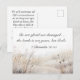 Postcard with inspirational quote scripture depicts a simple nature watercolor including a field with light earth tone shades of tan and grey foliage. It features an encouraging Bible Verse 2 Chronicles 20:15, "Be not afraid nor dismayed... the battle is not yours, but God's." The greeting, prayer can be personalized or deleted for a hand written message.