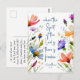 Postcard with Christian inspirational quote scripture depicts a simple floral watercolor design with a variety of pink, blue and lavender flowers and greenery. It features an encouraging Bible Verse from 2 Corinthians 3:17, "Where the Spirit of the Lord is there is freedom." The greeting, prayer can be personalized or deleted for a hand written message.