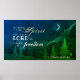 Beautiful poster depicts a forest of pine trees with a night sky filled with stars and snowflakes. It features Bible Verse 2 Corinthians 3:17, "where the Spirit of the Lord is, there is freedom."