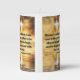 This pillar candle has a roxboroughCf bold print font with black letters displaying the "2 Corinthians 5:8 KJV" bible scripture verse over a picture displaying a cross with a glowing look shining over a body of water creating a mirror like reflection featuring a golden color theme in the background. This verse is referencing the Book Of 2 Corinthians 5th chapter showing the 8th verse in this bible scripture quote theme from the King James bible. The candle is covered with a beautiful full-color wrap hand poured, individually designed made with high grade American paraffin & beeswax and, burns approximately 40 hours made in the USA.