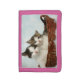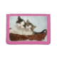 2 Cute Kittens or cats in basket Women's Pink Wallet is a beautiful design depicting two adorable white fur Kittens in a brown knitted basket cuddling together. Perfect gift for that special woman.