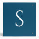 2 Large White Monograms, Initials on Ocean Blue 3 Ring Binder