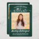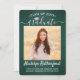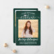 Share the joy of a high school or college graduation with these custom 2 photo green, white and silver announcements. (IMAGE PLACEMENT TIP: An easy way to center a picture exactly how you want is to crop it before uploading to the Zazzle website.) This template includes graduate name, class year & school, and is simple to customize with any wording of your choice, such as party invitation details, parents' names, special honors, degree title, favorite inspirational quote, graduate's contact info, future education plans, or new job position. If there's any text not wanted simply delete it. Design features a dark green brushed background, faux foil mortar board cap, handwritten style script calligraphy, modern minimalist typography, and two photos of your choice, such as senior pictures or images from the commencement ceremony. Please note that background is printed color not metallic foil. These elegant graduation announcement cards are a stylish way to share your special day celebration with family and friends. Congratulations to the graduate!