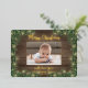 2 Photo Christmas Greenery, Rustic Wood & Lights Foil Holiday Card