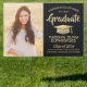 Add a personalized touch to a college or high school graduation celebration with this custom 2 photo black and gold yard sign. Pictures and all text are simple to customize. Simply place in lawn as a decoration or to welcome guests to a graduation party. Design features a faux gold foil mortar board, stylish modern typography, handwritten style script calligraphy, and two photos of the graduate, such as senior pictures or images from the commencement ceremony. Please note that gold is printed color, not foil. This outdoor party sign is an elegant way to celebrate the special day. Congratulations to the graduate!