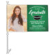 Add a personalized touch to a college or high school graduation car parade or drive by celebration with this custom 2 photo green, white, and black car window flag. Design features a green ombre background, black mortar board with white outline, stylish modern typography, handwritten style script calligraphy, and two photos of the graduate, such as senior pictures or images from the commencement ceremony. This party sign is an elegant way to celebrate the special day. Congratulations to the graduate!