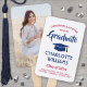 Add a personalized touch to a college or high school graduation celebration with this 2 sided custom photo red, white and blue house flag. Pictures and all text are simple to customize and can be different or the same on front and back. Simply hang outside as a yard decoration or as a welcome sign for a graduation party. Design features a mortar board cap, stylish modern typography, handwritten style script calligraphy, and two photos of your choice such as senior pictures or images from the commencement ceremony. This outdoor party sign is an elegant way to celebrate the special day. Congratulations to the graduate!