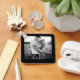 Fully customizable 2 black and white photo template double sided love text metal keychain on black.