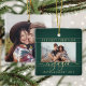 2 Photo Engagement First Christmas Green and Gold Ceramic Ornament