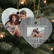 2 Photo First Christmas Engaged Faux Wood Heart Ceramic Ornament