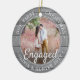2 Photo First Christmas Engaged Gray Faux Wood Ceramic Ornament