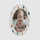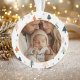 2 Photo Cute Baby's First Christmas holiday photo ornament features a nordic tree pattern. Edit in a minute, upload your favorite photo and enter your data. Perfect for your new little one!