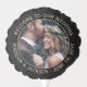 Add a personalized finishing touch to your special day celebration with these elegant balloons. Design features two photos of your choice, a black border, and chic modern gold color text in a circle. Images and text can be different on front and back. This wedding table decoration idea is a stylish way to share two of your engagement pictures while welcoming party guests to your reception. The design is simple to customize for any occasion. Please note that gold text is non-metallic printed color, not foil.