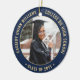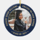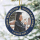 Commemorate the graduate's achievement with an elegant navy blue and gold custom two photo round graduation Christmas ornament. Pictures and all text are simple to customize and can be different on front and back. Include any favorite inspirational quote, motivational saying, school name and degree, congratulations, thanks mom and dad, or other message of your choice. Design features a navy blue border, personalized modern typography name, school, & class year in a circle, and 2 photos of the graduate, such as senior pictures or images from the commencement ceremony. Please note that gold is printed color, not metallic foil. Makes a thoughtful keepsake graduation gift idea.