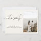 Flip the card to discover a heartfelt wedding announcement, elegantly framed and leading into the warm invitation to your wedding after party reception celebration. A second vertical wedding photo—carefully selected by you—serves as a personal backdrop to the details of your soirée, creating an intimate connection with each recipient. Every word is tastefully arranged to invite your guests into the heart of your celebration, ensuring they know just how important their presence is to the continuation of your love story. Include your wedding website to entice your guests to see more photos of your nuptials, and give their rsvp's on your wedding website.