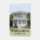 Celebrate the joy of your new place with a custom 2 photo "First Christmas in our New Home" square metal ornament. All wording on this template are simple to personalize and pictures can be different or the same on front and back. The modern minimalist black and white overlay design features two images of your choice, handwritten style script typography message, family name, year, and new address on back. This unique family keepsake adds an elegant touch to Xmas home decorations or makes a thoughtful housewarming realtor gift idea. There's no place like a new home for the holidays!