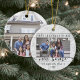 Celebrate the joy of your new place with a custom 2 photo "First Christmas in our New Home" round faux marble ceramic ornament. Text and pictures on this template are simple to personalize. (IMAGE PLACEMENT TIP: An easy way to center a photo exactly how you want is to crop it before uploading to the Zazzle website.) Design features an elegant black and white faux marble border, modern handwritten style script calligraphy, typewriter typography family name and year, and two images of your choice. This unique family keepsake adds a stylish touch to Xmas home decorations or makes a thoughtful housewarming realtor gift idea. There's no place like a new home for the holidays!