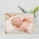 Modern baby photo birth announcement for girl or boy. Simply use this template to add your own custom photo on the front and back of the card; of your own sweet baby and personalize with baby's name in the elegant trendy script typography.