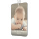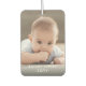 Celebrate the simple joys of family and friends with an elegant 2 photo car air freshener. Pictures and all text are simple to customize, and can be different or the same on front and back. It's easy to make it yourself. Design features a modern minimalist layout, vintage inspired art deco typography, and two pictures of your choice. Include any text such as name, year, monogram or favorite motivational or inspirational quote. This template is set up for a baby, but can easily be personalized for a family, wedding couple, best friends, kids, pets, etc. You can design your own unique keepsake gift idea for a hard to buy for person. Makes a cool and cute addition to automobile interior decor.