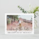 If unexpected circumstances have caused a postponement or cancellation of your special day, inform family and friends of the change plans with these elegant wedding save the new date invitations. Pictures and all text are simple to customize. (IMAGE PLACEMENT TIP: An easy way to center a photo exactly how you want is to crop it before uploading to the Zazzle website.) Design features a white border, handwritten style script calligraphy, modern minimalist typography, and 2 pictures of your choice, one each on front and back. This engagement announcement note card is a chic and stylish way to inform wedding guests of your upcoming special day celebration and invite them to resave your new rescheduled date.