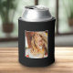 Personalized can cooler, stubby holder photo template on black with thin white frame.