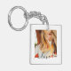 Fully Customizable 2 Photo Template Double Sided Love Text Keychain on White.