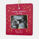 Celebrate the joy of anticipation with our elegant ceramic ornament, featuring “Our First Christmas Expecting,” baby’s name, due date, customizable sonogram and photo, plus a heartfelt message on the back. Red background with falling gold stars makes this keepsake a timeless treasure for parents-to-be.