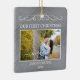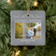 2 Photos First Christmas Engaged Rustic Wood Grain Ceramic Ornament