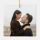 Celebrate the joyful 1st holiday of your engagement with custom 2 photos of "Our First Christmas Together" square ceramic ornament. This design features stylish distressed stripes on the top with Christmas colors red and green, handwritten style calligraphy, the couple's names & year, and two pictures of your choice. This unique wedding keepsake adds an elegant touch to Xmas home decorations.