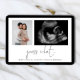 Minimalist 2 Photos Guess What Pregnancy Announcement. Simply replace the two sample photos with your own and personalise with your tagline at the bottom. Guess What is in a stylish set script.