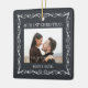 Celebrate the joyful 1st holiday of your engagement with our "2 Photos Ornamental Frame First Christmas Engaged" square ceramic ornament. This design features a simple and stylish white ornament frame on a black backdrop, handwritten style calligraphy, the couple's names, and two photos of your choice. This unique wedding keepsake adds an elegant touch to Xmas home decorations.