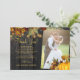 Elegant chic autumn fall wedding stylish thank you card template on dark brown barn wood featuring beautiful burnt orange botanical bouquets with watercolor pumpkin, dried leaves and foliage, strings or twinkle lights, and a chic faux gold calligraphy script. ++++++++++++++ Easy to personalize with your details and two photos on front and back! +++++++++++ Suitable for elegant summer or autumn fall rustic country outdoor backyard or barn weddings.