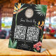 2 QR Codes Pay Here Logo Tropical Palm Black Gold Pedestal Sign