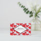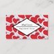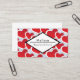 Business cards for cardiac health or other heart centric professions with a repeating pattern of 2 different sized red hearts each heart surrounded by a white border. A diamond shaped frame layered over top with your text inside.