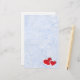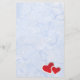 Stationery with an illustration of 2 paper hearts - red with a white border. Set on an elegant icy blue marble background.