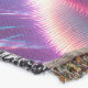 A quality printed throw has its advantages. This is a much finer weave throw than its loopier cousins, and though lighter, it is worth the investment for custom room accessorizing. The back is much prettier than the typical brown, and the fringe on the long sides very vivid, the selvage nicely done. Before photographing, I washed the throw in cold water, delicate, with a thicker woven throw the same size. On tumble dry low, this throw was dry in half the time as the other. This is a very practical quality if you use throws for furniture covers or to wrap up in frequently. The sleekness of the fabric makes it a great layer for accenting or protecting without the feeling of sitting on too much stuff. Perfect for napping or when you feel a light chill coming on. The color printing is beautiful and on this fabric, matched the design and color of my Photoshop image. This is an advantage for blending room fabrics and colors. The fringe on the short sides prints the colors from the design image and therefore varies from the side fringe. I streaked a white fractal line through the plaid pattern to give the illusion of weaving. This printed as crisp as an illusory thread, and put some white in the short side fringe, showing another advantage of print vs loomed- for artistic purposes, line lines, detail, and color integrity can be planned and preserved. My loomed throws have color limitations and more of a needlepoint texture. Print throws reproduce an exact image. The throw felt a little stiff straight out of the package, but this went away in the first delicate wash. Of course I searched the wash water for ink or bleeding and there was none.