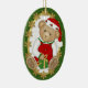 Cute oval ornament feature a teddy bear boy wrapping a Christmas gift. He is wearing a Santa Claus hat and matching outfit.. Back of this Christmas Ornament say Beary Merry Christmas 20XX. Ready for you to customize the date text. Fun gift or keepsake.