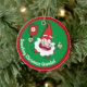 Cute Christmas pickleball ornament with Santa playing pickleball on stripy green background. custom text