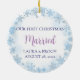 Fancy personalized newlywed wedding photo ornament to display your own special wedding photo memory. The bright blue snowflake border encircles the photo, creates a dreamlike atmosphere. Easily place a memorable photo of your couple in place of the template photo as well as your names and the date of your wedding on the back side. What a fantastic way to celebrate your first Christmas together! Example photo on front is by Vince Fleming (Source: @vincefleming on Unsplash).