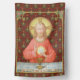 In this splendid image, Jesus sits at a table that is set for Passover and covered in a blue and white plaid cloth. He is clad in an eye-catching, soft red garment. It is Maundy or Holy Thursday and His Last Supper with His apostles. It is the moment at which He institutes the sacrament of Holy Communion or the Eucharist. + The figure of Jesus is isolated against a dark red background patterned with stylized artichokes in diamond shapes. The mood here is solemn. Lifting his eyes to heaven, Jesus raises his right hand in blessing. In his left, He holds up a large host, the Eucharistic bread, over the chalice filled with wine. In Latin--in a banderole beneath the scene--are the words of Consecration: “This is My Body… This is My Blood” (“Hoc est corpus meum… Hic est sanguis meus”). In remembrance of Him, at every Mass, the priest reenacts this sacred action turning ordinary bread and wine into Christ’s Body and Blood. + Image Credit (SAU 045): Antique devotional print of Jesus Instituting the Holy Eucharist, originally published in chromolithography by the Socièté de St. Augustin, Bruges, Belgium, late 19th century, from the designer’s private collection of religious ephemera.
