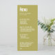 The stylish and practical design seamlessly integrates with the Rustic Harmony Collection's aesthetic, creating a cohesive atmosphere that reflects the love and joy celebrated on your wedding day. The olive green background on both sides provides a harmonious backdrop for the menu details and personal touches.