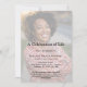 Funeral remembrance invitation featuring a white overlay invite celebration of life template that is easy to personalize.